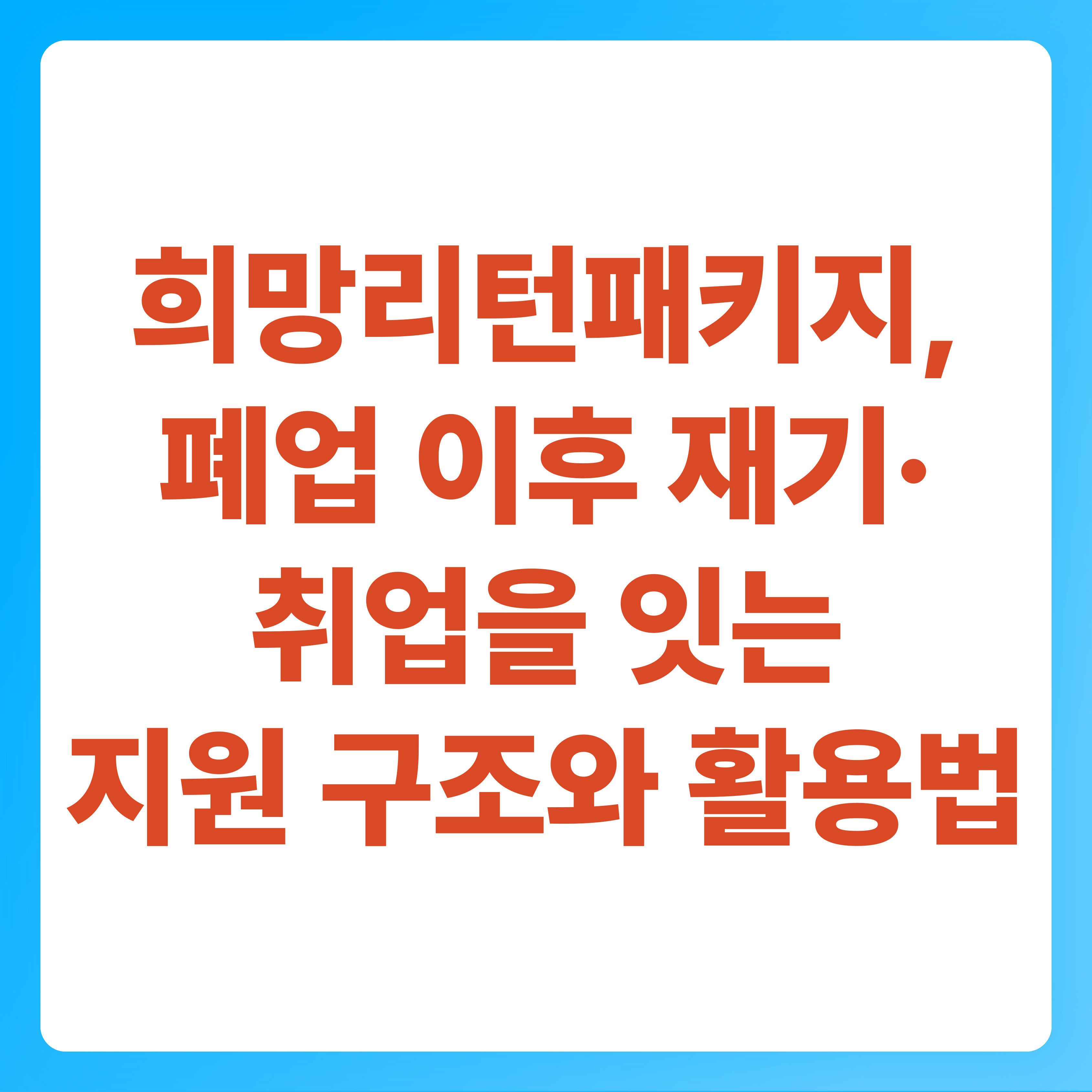 희망리턴패키지, 폐업 이후 재기·취업을 잇는 지원 구조와 활용법금융,경제,재테크정보 2026. 1. 10. 13:47