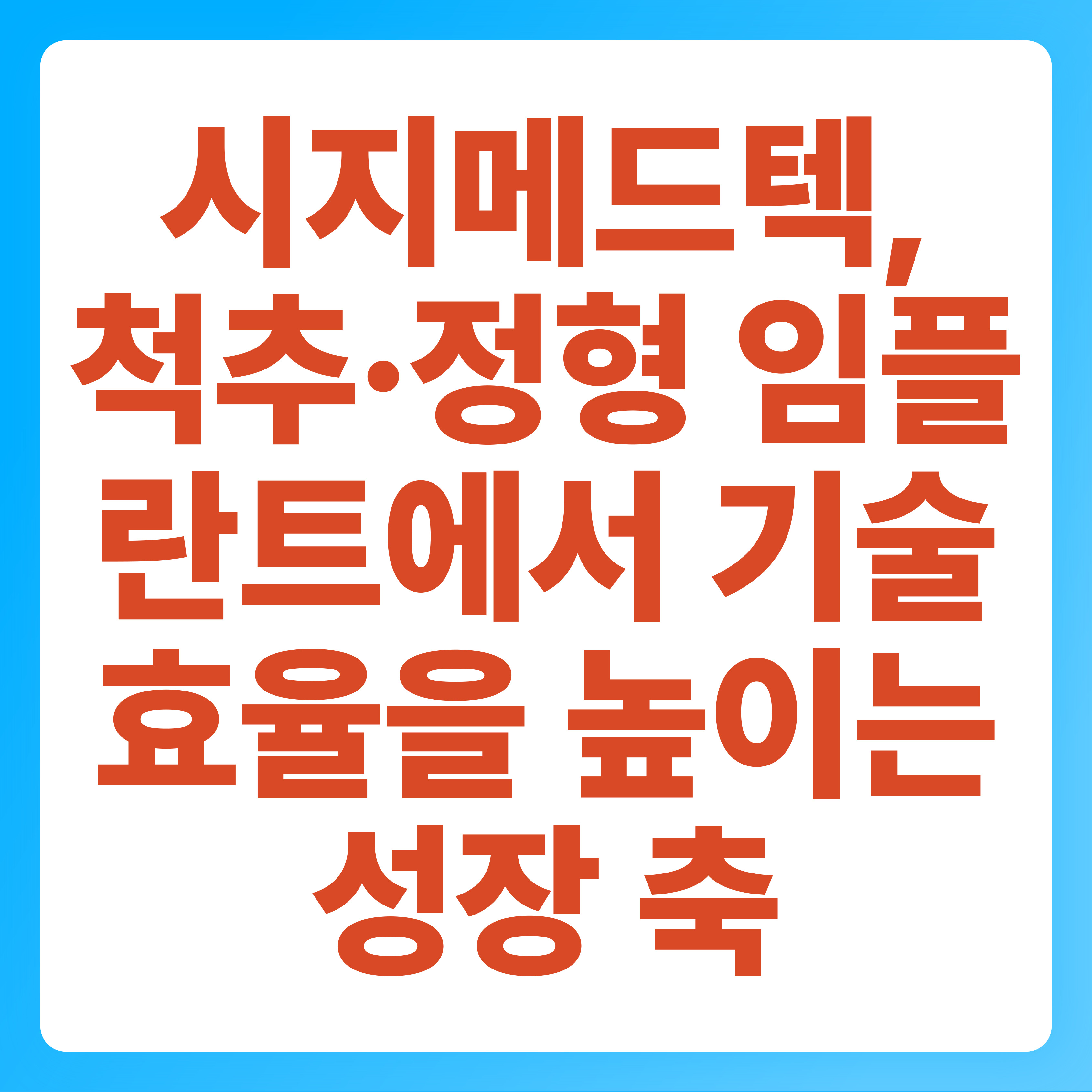 정형외과·척추 시장은 고령화로 퇴행성 질환이 늘고, 활동 인구의 스포츠·외상 수요가 더해지며 중장기적으로 수요 기반이 유지될 가능성이 있습니다. 병원은 합병증 위험을 낮추고 회복 경로를 안정화하려는 요구가 커지면서, 임플란트 선택에서도 예측 가능성과 술기 효율을 중시하는 경향이 있습니다. 또한 재수술(리비전) 영역은 난도가 높아 제품과 도구 체계의 신뢰가 특히 중요해, 레퍼런스 축적이 강한 진입장벽으로 작동할 수 있습니다. 시지메드텍이 시장에서 기회를 넓히려면, 단일 제품의 히트보다 수술 유형별로 대응 가능한 포트폴리오의 연속성을 확보하는 전략이 유리할 수 있습니다. 👉🌿 수요는 “경기”보다 “인구 구조와 술기 변화”에서 만들어지는 측면이 큽니다.